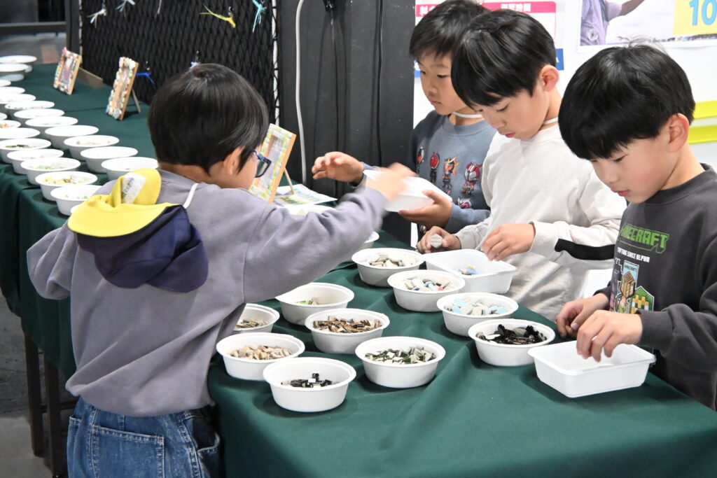 説明もそこそこに、たくさんあるタイルに目を輝かせずにはいられない!と、吸い込まれていく児童たち。笑