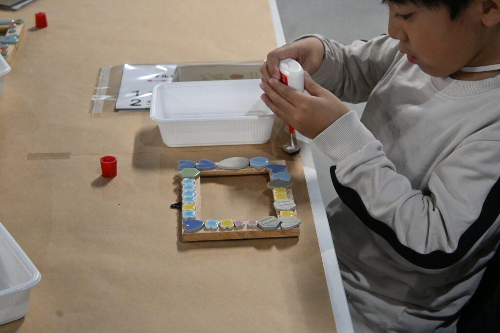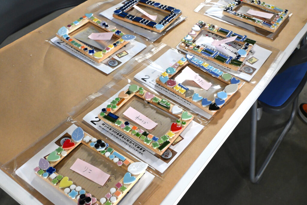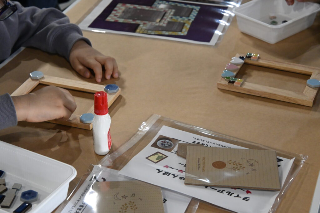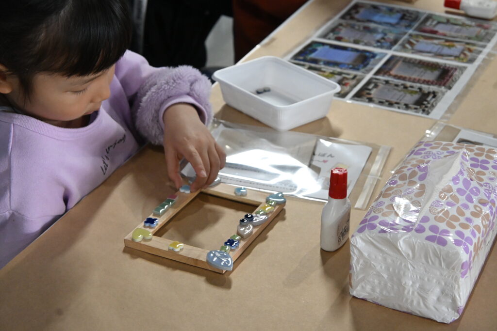 本日は市内保育園の児童たちがモザイクタイルでフレームを作りに来てくれました。