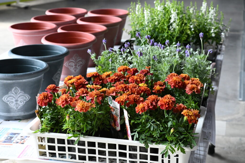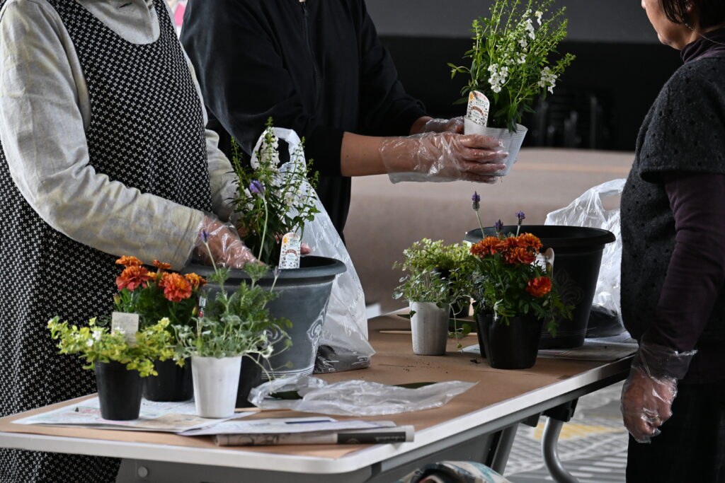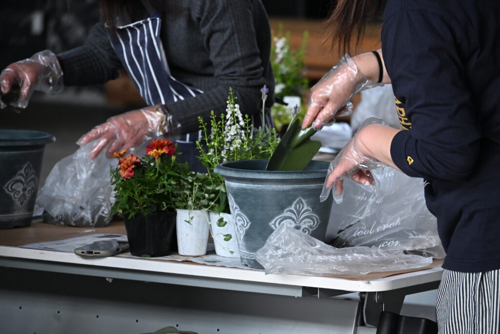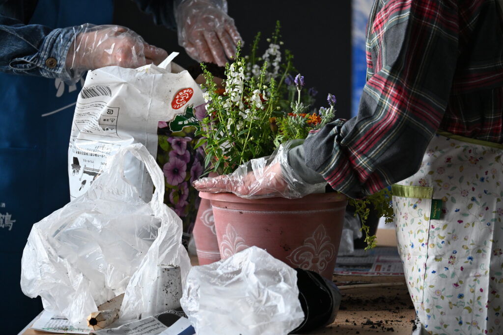 参加者は好きな鉢と苗を選んで、寄せ植えを行います。