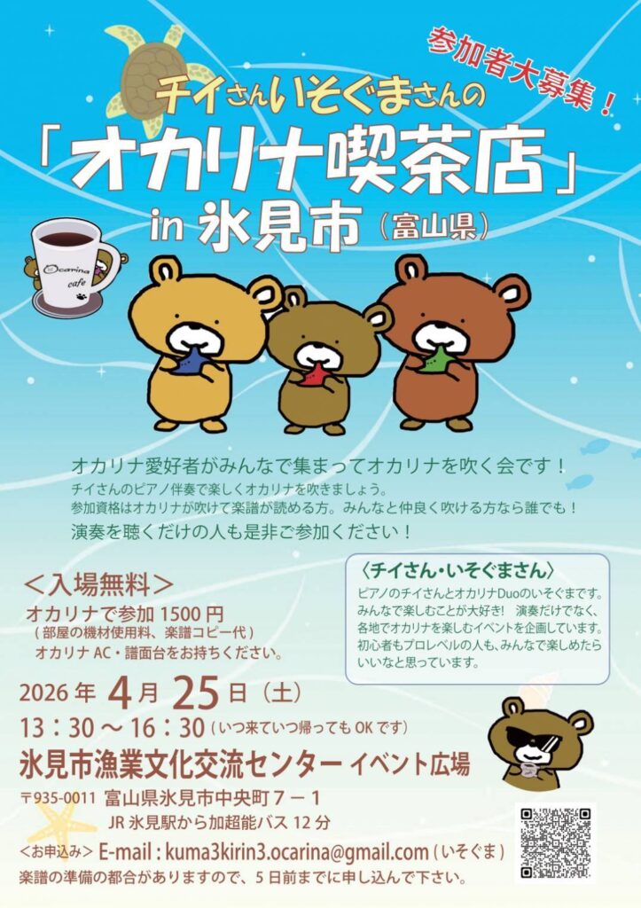 4月25日はオカリナ喫茶店in氷見市を開催しました。