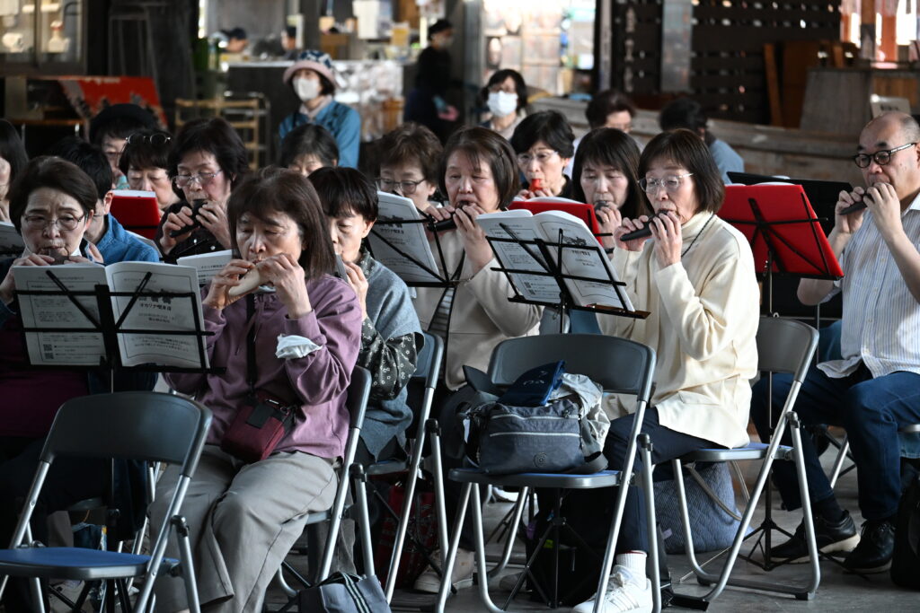 参加者の方はマイオカリナを持参し、オカリナの先生くまさんと一緒に演奏をします。