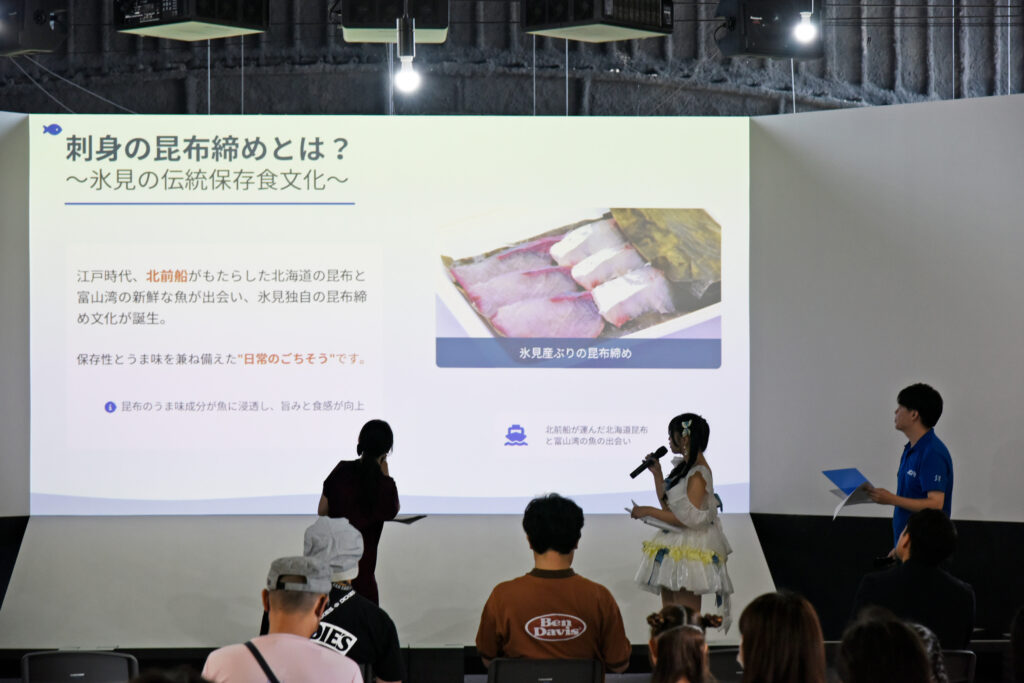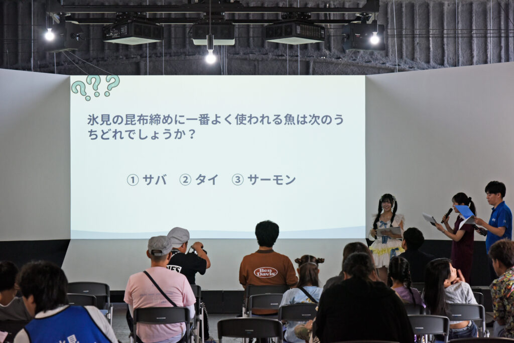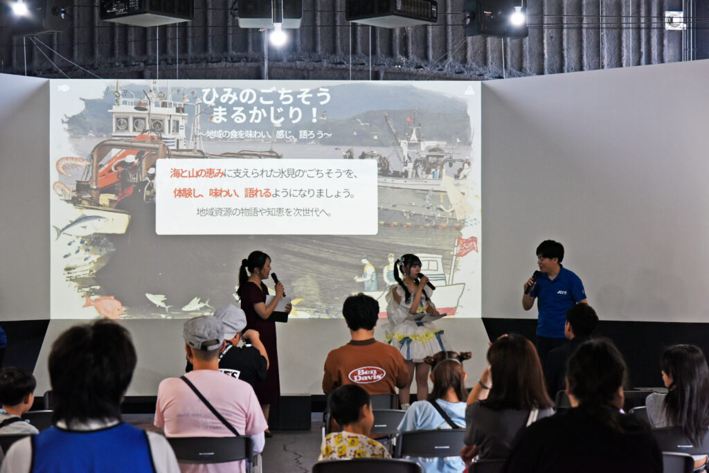 氷見の旬の食材や地域の特産物などについてクイズやトークを交えながら、歴史などについて学んでいきます。